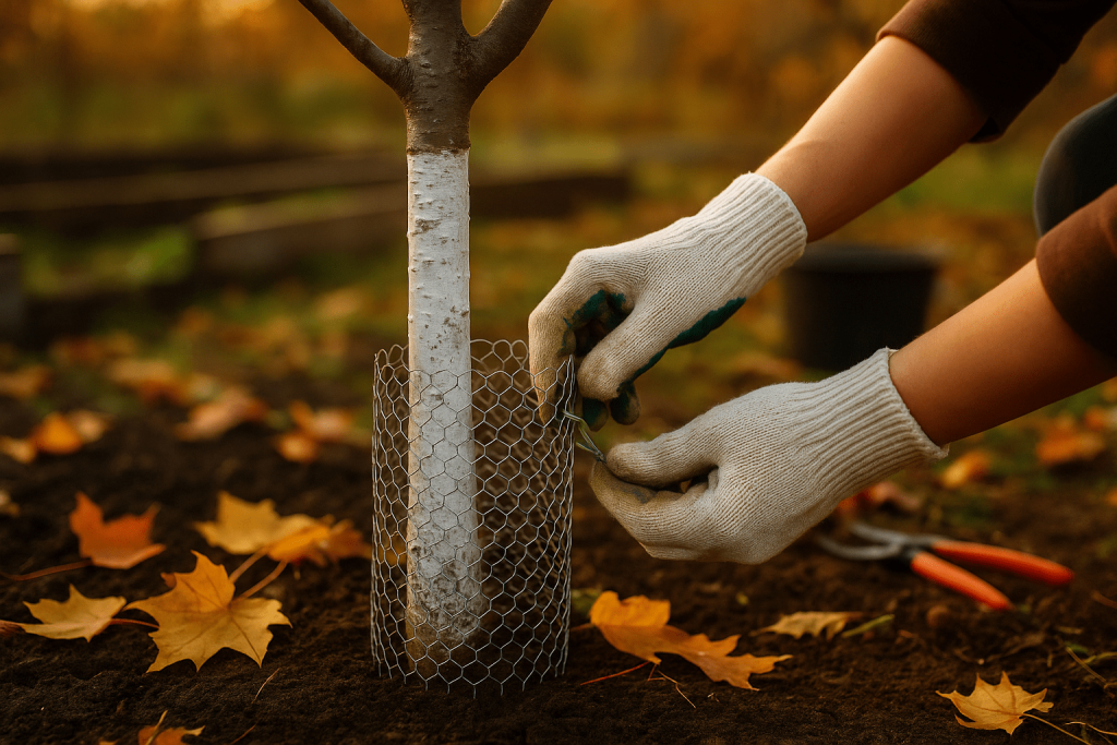 - Конец октября – ноябрь: побелка, установка сеток/лапника, подвязка, снегозадержание по мере выпадения.